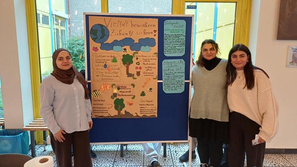 Mit Fachwissen, Kreativität und viel Herzblut haben drei Schülerinnen der Berufsfachschule Kinderpflege ihre Projekte im Bereich Bildung für nachhaltige Entwicklung (BNE) auf dem diesjährigen Umweltmarkt in Grevenbroich präsentiert.
