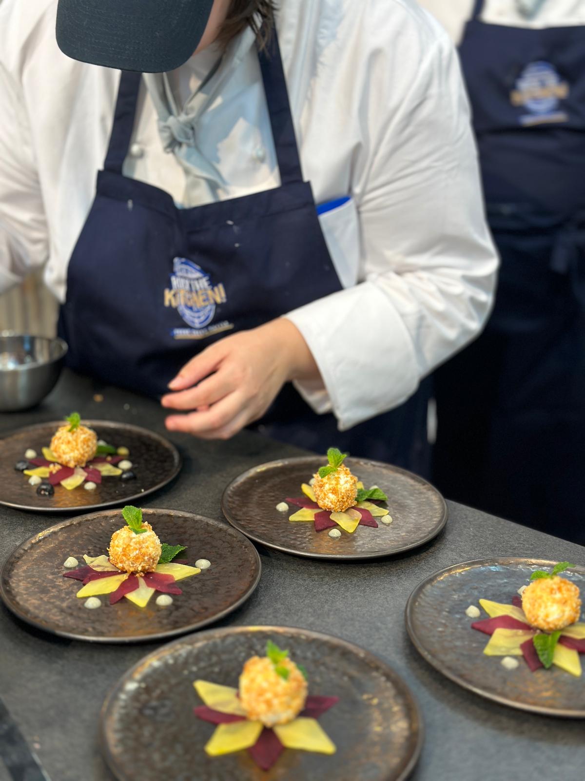 Besonders spannend war erneut der Wettbewerb „Young Chef Battle“: Zum dritten Mal nahmen Jungköchinnen und -köche aus dem 2. und 3. Ausbildungsjahr des BBZ Grevenbroich daran teil. Die Teams mussten innerhalb von vier Stunden aus einem vorgegebenen Warenkorb ein kreatives 3-Gang-Menü entwickeln und es anschließend einer Fach- und Gästejury präsentieren. Obwohl sich unser Team nur knapp geschlagen geben musste, konnte sich in diesem Jahr das Team „Fulda“ durchsetzen und fährt damit zum Finale nach Berlin, wo die vier besten Vorrunden-Teams erneut gegeneinander antreten werden.
